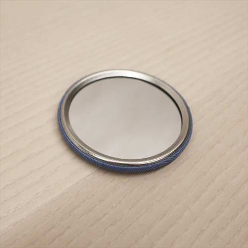 「邂逅」の月と太陽モチーフが金糸で刺繍された、コンパクトサイズのミラーです。